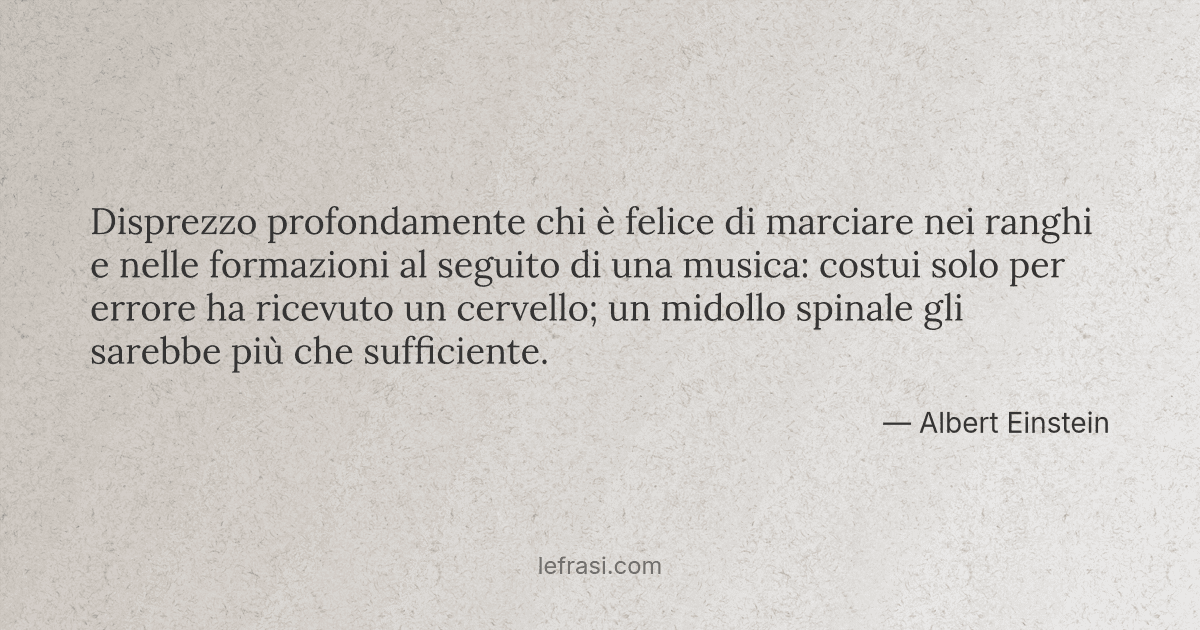 Disprezzo profondamente chi è felice di marciare nei ranghi e nelle formazioni al seguito di una musica: costui solo per errore ha ricevuto un cervello; un midollo spinale gli sarebbe più che sufficiente.