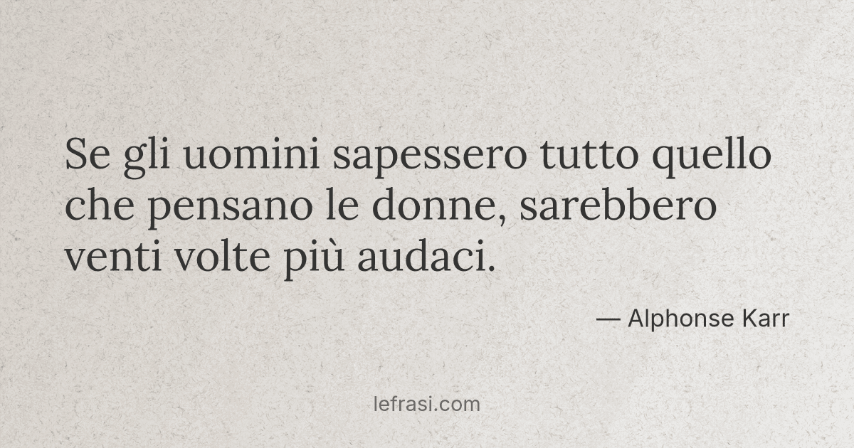 Se gli uomini sapessero tutto quello che pensano le donne, sarebbero venti volte più audaci.— Alphonse Karr