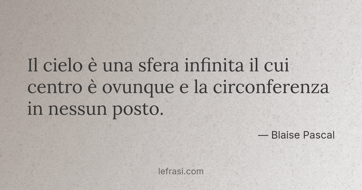 Il cielo è una sfera infinita il cui centro è ovunque e la circonferenza in nessun posto.— Blaise Pascal