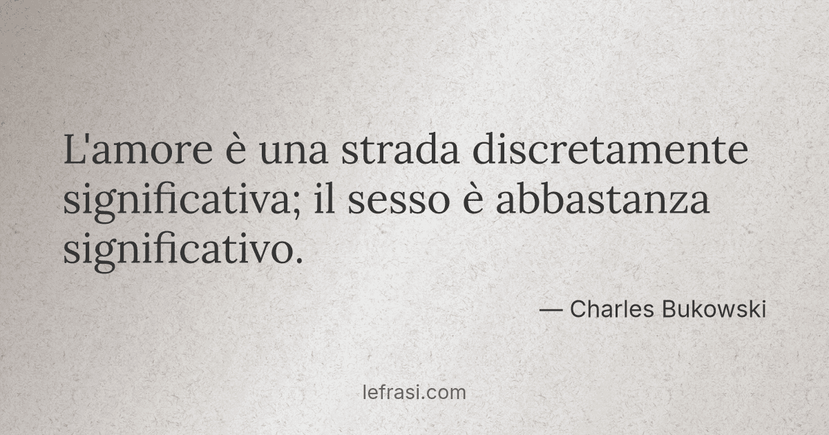 L'amore è una strada discretamente significativa; il sesso è abbastanza significativo.