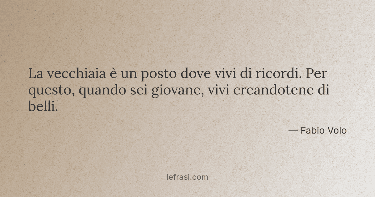 La vecchiaia è un posto dove vivi di ricordi. Per questo, quando sei giovane, vivi creandotene di belli.— Fabio Volo