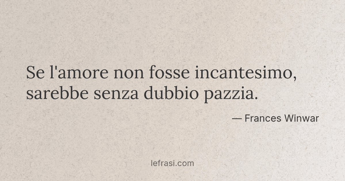 L’amore si trasforma in un incantesimo quando si dimentica la ragione, e questa citazione ne è un esempio. L’incantesimo non è solo un’illusione, ma un’esperienza che scende oltre la logica, come un’ossessione che si fa fede. L’amore vero non è governato da calcolo, ma da un’energia che sfugge al controllo razionale. La citazione si concentra sulla dimensione irrazionale dell’amore, che non è solo sentimento, ma una forza che agisce al di là della mente. Questo incantesimo è una forma di pazzia, ma non una pazzia distruttiva, bensì una forma di abbandono totale, dove il sogno diventa realtà. L’amore vero non si limita a un’emozione, ma diventa un’esperienza che cambia la vita. La citazione non si focalizza sulla fine dell’amore né su un amore non corrisposto, ma su un sentimento che esiste al di fuori del senso comune. L’amore vero è una forza che non si spiega, ma si vive. L’incantesimo dell’amore è una pazzia che non è mai stata una follia, ma una verità irraggiungibile. La citazione si concentra sull’aspetto di un amore che non è solo sentimento, ma una forma di esistenza che si espande al di fuori della logica. Questo tipo di amore non è semplice né banale, ma un’esperienza che non ha bisogno di giustificazioni. L’amore vero è un incantesimo che non si può spiegare, ma si vive con intensità. La citazione si concentra su questo aspetto, senza mai entrare nel campo dell’amore finito o dell’amore non corrisposto.