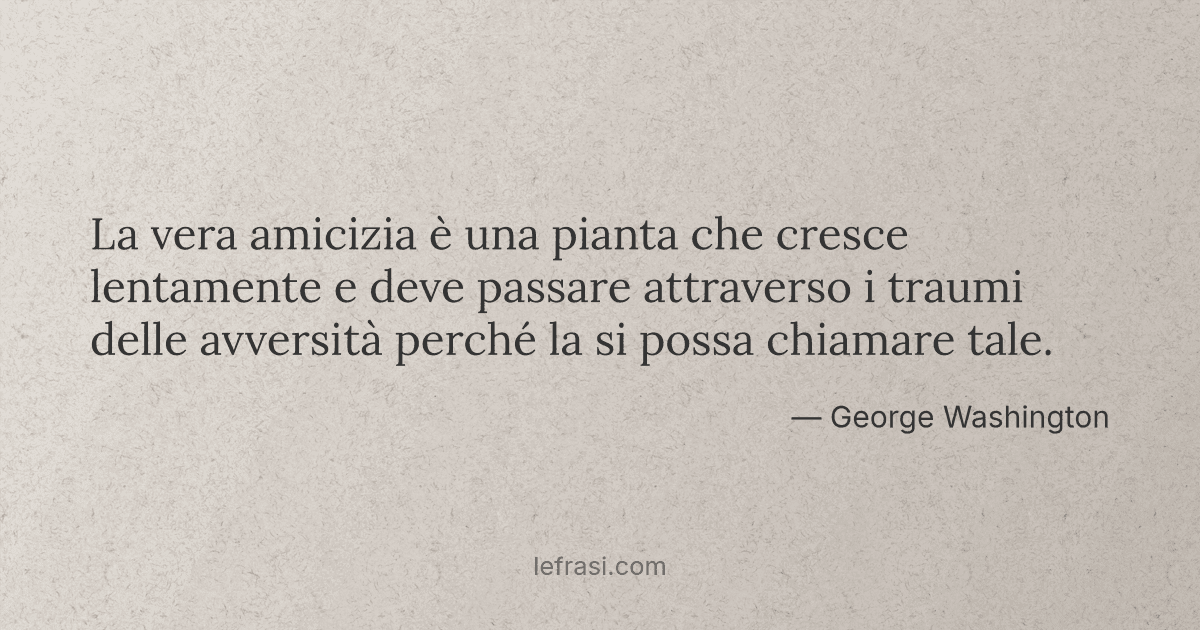 La vera amicizia è una pianta che cresce lentamente e deve passare attraverso i traumi delle avversità perché la si possa chiamare tale.