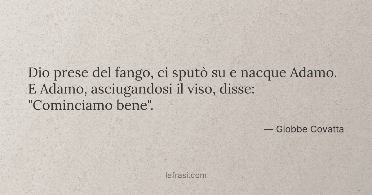 Dio prese del fango, ci sputò su e nacque Adamo. E Adamo, asciugandosi il viso, disse: "Cominciamo bene".— Giobbe Covatta
