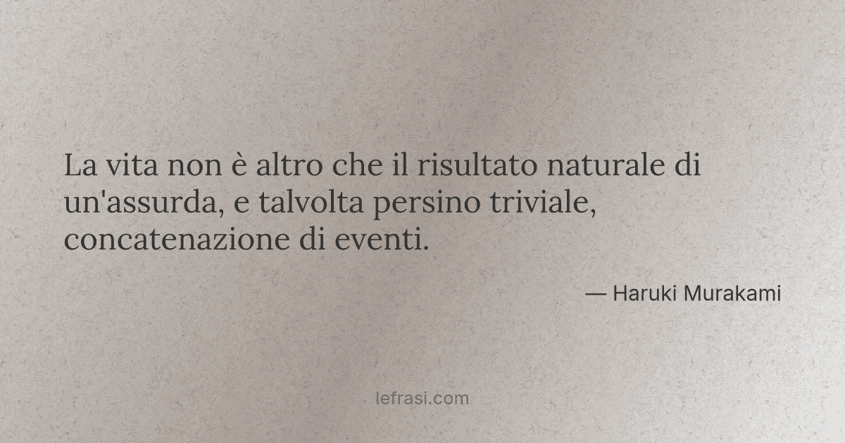 Haruki Murakami offre una prospettiva sull'essenza della vita, suggerendo che essa si manifesti come un insieme di eventi casuali e talvolta insignificanti. Questo aforisma invita il lettore ad ammettere la complessità e l'incoerenza dell'esistenza umana, mettendone in discussione le strutture ordinate che spesso cerchiamo di applicare per trovare un senso alla vita. La sua osservazione ci sollecita a considerare come possa emergere significato o struttura da situazioni apparentemente insignificanti e casuali della nostra esistenza quotidiana.