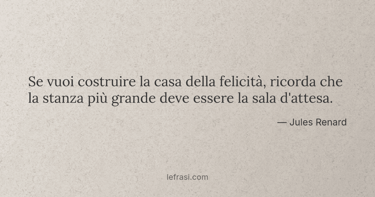 Se vuoi costruire la casa della felicità, ricorda che la stanza più grande deve essere la sala d'attesa.