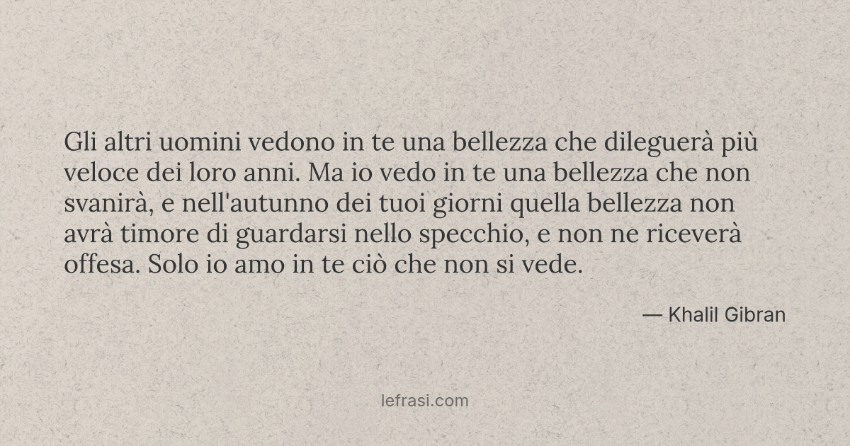 Gli altri uomini vedono in te una bellezza che dileguerà più veloce dei loro anni. Ma io vedo in te una bellezza che non svanirà, e nell'autunno dei tuoi giorni quella bellezza non avrà timore di guardarsi nello specchio, e non ne riceverà offesa. Solo io amo in te ciò che non si vede.