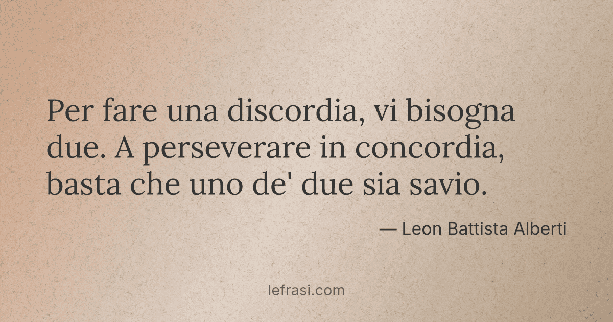 Per fare una discordia, vi bisogna due. A perseverare in concordia, basta che uno de' due sia savio.