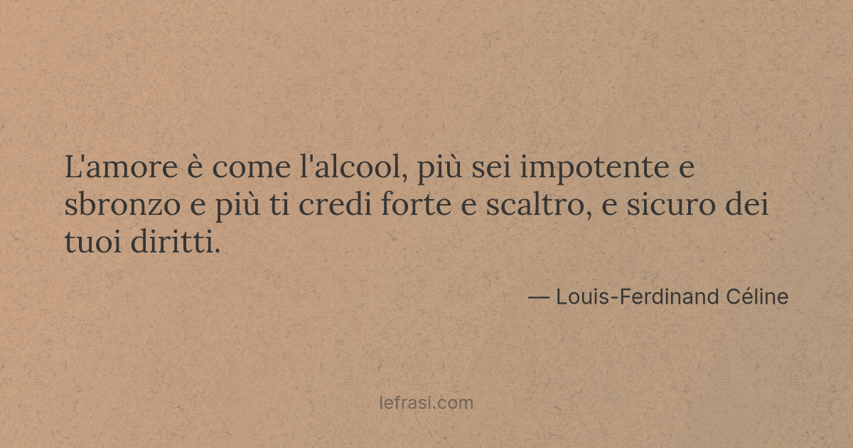 L'amore è come l'alcool, più sei impotente e sbronzo e più ti credi forte e scaltro, e sicuro dei tuoi diritti.