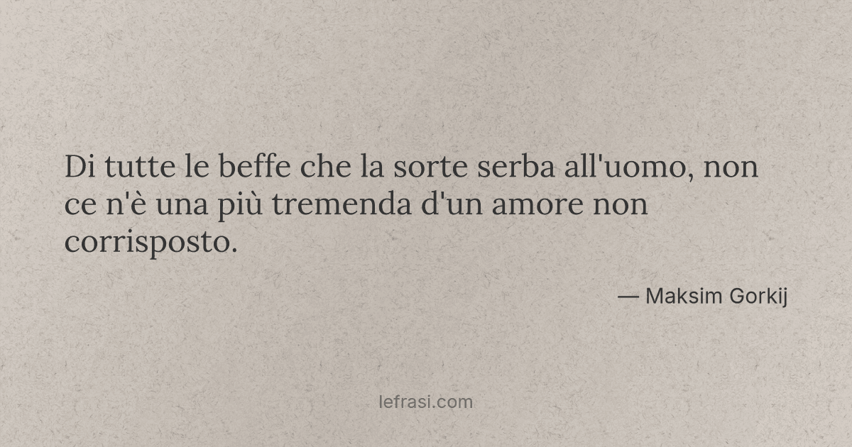 Di tutte le beffe che la sorte serba all'uomo, non ce n'è una più tremenda d'un amore non corrisposto.