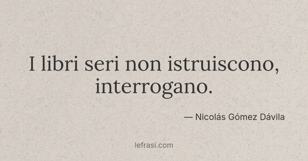I libri seri non istruiscono, interrogano.— Nicolás Gómez Dávila