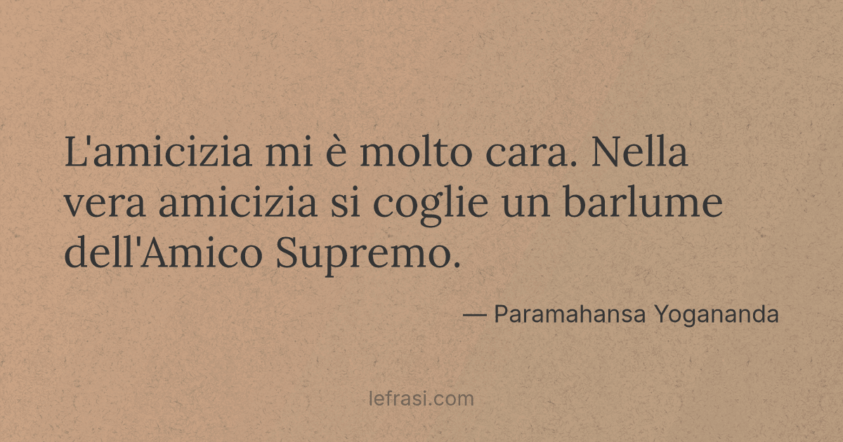 La citazione esprime un profondo rispetto e valore per l'amicizia autentica, che non si limita a una semplice condivisione di momenti, ma rappresenta un legame spirituale e profondo. L'idea di cogliere un 'barlume dell'Amico Supremo' suggerisce che l'amicizia vera è una via per scoprire qualcosa di più grande, un'esperienza che va oltre il reciproco apprezzamento. Questo tipo di amicizia è caratterizzato da una sincera connessione, dove ogni interazione è un'occasione per crescere e riflettere. Non è basata su convenienze o vantaggi, ma su un'intesa autentica che richiede dedizione e trasparenza. L'amicizia vera e sincera, quindi, non solo unisce due persone, ma apre la mente a una visione più ampia della vita, guidando verso un'esperienza spirituale e personale di profonda significatività.