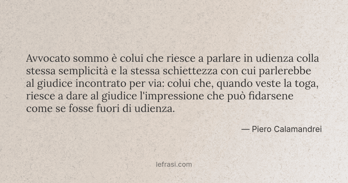 Avvocato sommo è colui che riesce a parlare in udienza colla stessa semplicità e la stessa schiettezza con cui parlerebbe al giudice incontrato per via: colui che, quando veste la toga, riesce a dare al giudice l'impressione che può fidarsene come se fosse fuori di udienza.