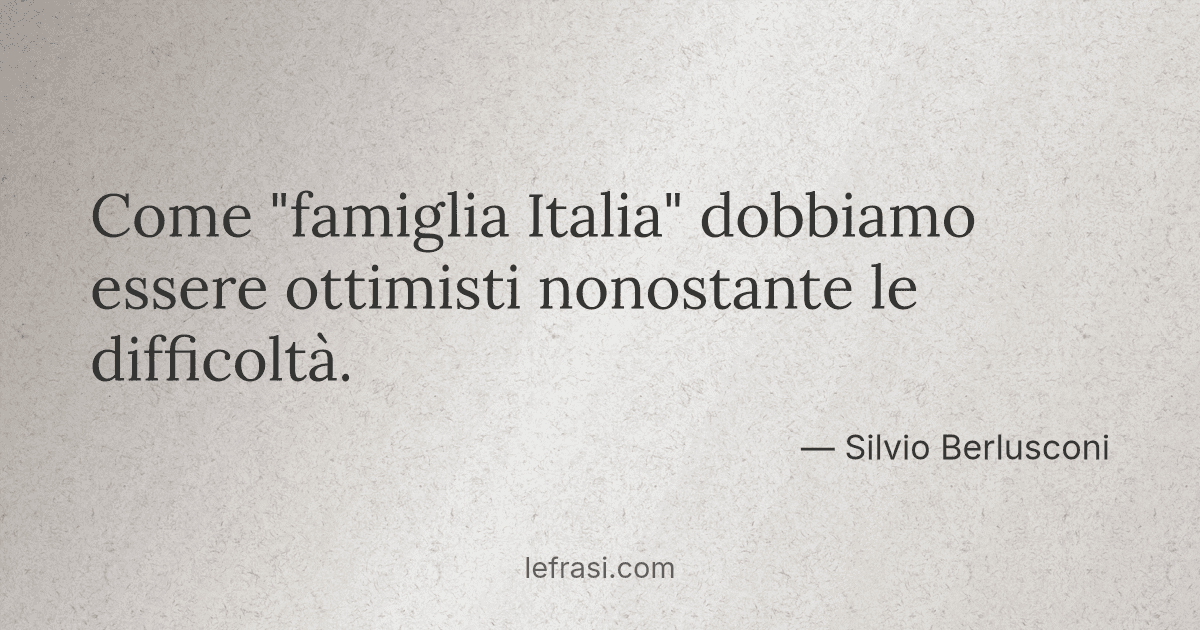 Come "famiglia Italia" dobbiamo essere ottimisti nonostante le difficoltà.