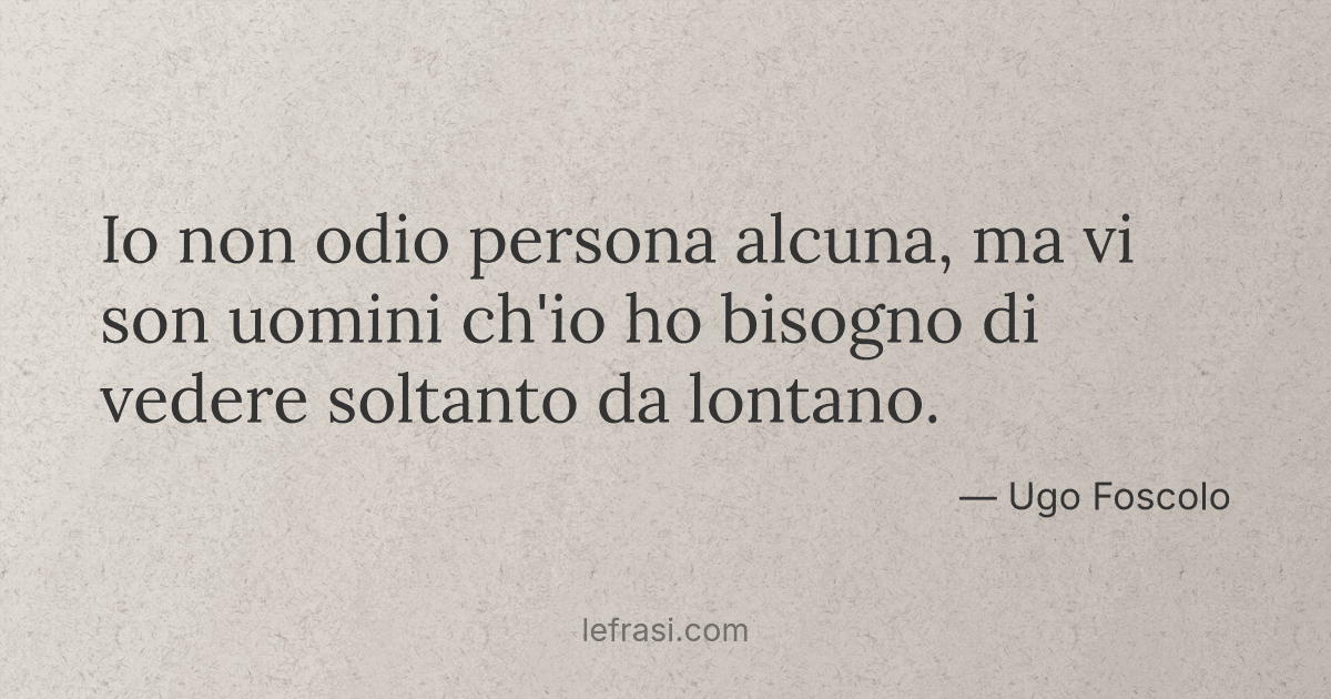 Io non odio persona alcuna, ma vi son uomini ch'io ho bisogno di vedere soltanto da lontano.