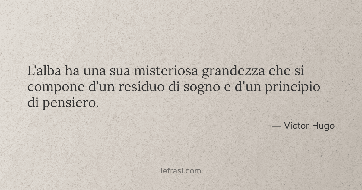 L'alba ha una sua misteriosa grandezza che si compone d'un residuo di sogno e d'un principio di pensiero.— Victor Hugo