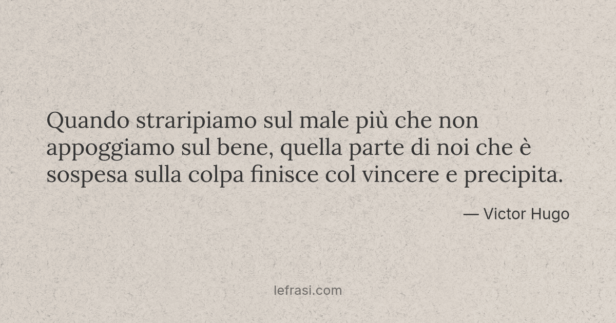 Quando straripiamo sul male più che non appoggiamo sul bene, quella parte di noi che è sospesa sulla colpa finisce col vincere e precipita.