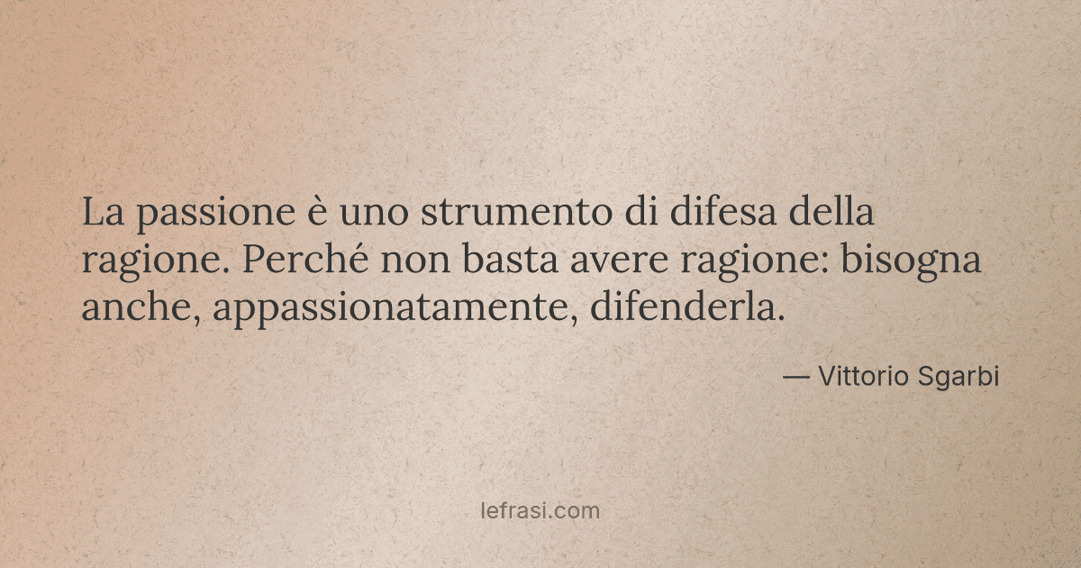 La passione è uno strumento di difesa della ragione. Perché non basta avere ragione: bisogna anche, appassionatamente, difenderla.
