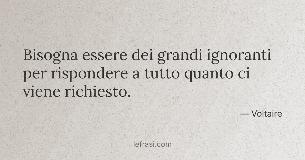 Bisogna essere dei grandi ignoranti per rispondere a tutto quanto ci viene richiesto.— Voltaire